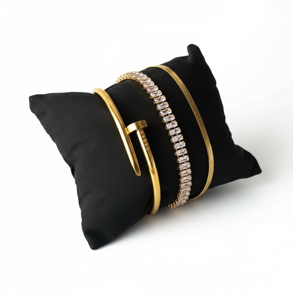 Each bracelet in this distinguished set embodies balance — bold yet minimal, radiant yet effortlessly wearable. Designed for the discerning individual, it transcends trends to become a statement of enduring style.